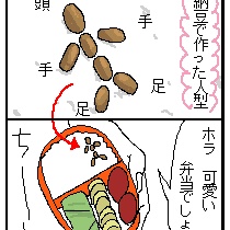 7粒の納豆で出来た、そいつはまるで藁人形みたいでした。 しかも、リュックの中でお弁当が揺れるたびに納豆の1粒1粒が移動しちゃってたらしく 昼に弁当を開けた時にはバラバラ殺人事件みたくなってたんだ。 ...