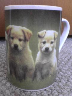 実はこれ、写真には写りきらなかったんですが、コップの裏側にもう2匹、犬が隠れてるんですよ~。<br>