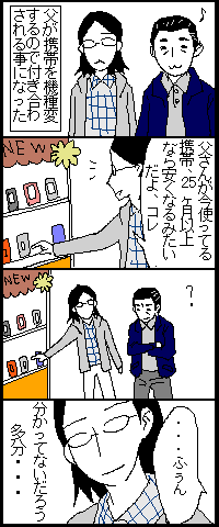 父が機種変 2007年10月22日 21:37 機種変するのって簡単になったもんですねぇ。 機種選んで、ちょろっと書類に名前やら住所やら記入して、15分位で変更完了なんだもんな。 ちなみに父に携帯電話の値段の事をもう一度説明したら、分かったみたいです。 「日常」カテゴリの最新記事 < 前の記事次の記事 > コメント コメントフォーム 名前 コメント 記事の評価 リセット リセット 顔 星 情報を記憶 コメントを投稿する