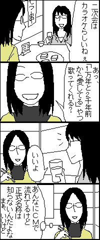 で、二次会はカラオケで、友人に『一万年と二千年前から愛してる』歌を歌ってもらいました。