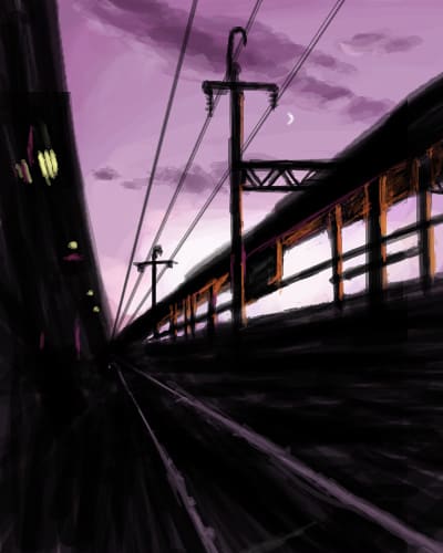 無題 2008年06月18日 23:54 夕暮れの線路描いてみました。 こういう時間帯に、こういう場所に行ってみたいです。 で、一晩中ぼんやり過ごして、朝焼けまで見てみたいです。 ぼんやりするのは得意なので。 そんなの得意でも何の得にもならないけど。(笑) あぁ、もっとしっかりした人間になりたいなぁ。 「絵」カテゴリの最新記事 < 前の記事次の記事 > コメント コメント一覧 (3) 1. 白原 2008年06月19日 10:23 お、これってパソコンで描いたんですか?<br> お、これってパソコンで描いたんですか?<br> 紫いいですね! 0 キヨ がしました 2. 葵 2008年06月19日 15:36 わぁ~(*^_^*)いいですね~♪<br> わぁ~(*^_^*)いいですね~♪<br> 私も夕暮れ時のこういう風景すごく好きです。<br> 空を見上げるのが好きすぎて、習慣のようにもなっているのですが(^^;)<br> 夕焼けに染まる頃から星が出るまで見上げるのも好きです。<br> ぼんやりするの、私も得意です(笑)<br> 今の季節の夕時も、日中の暑さを忘れさせる涼しげな風が吹いて<br> ああいいな~と思いますね(^.^) 0 キヨ がしました 3. 清 2008年06月19日 23:24 白原さん><br> 白原さん><br> はい、パソコンで描いてみました。<br> 紫ってこんな風に使えるんだなぁ、と描いてて実感しました。<br> <br> 葵さん><br> 私も会社から出た時なんて、開放感いっぱいになっちゃって、空なんか眺めちゃったりします。<br> 気持ちイイですよねぇ。やっぱり青空が好きです。<br> うんうん、夕暮れ時の涼しさも気持ち良いなぁ。 0 キヨ がしました コメントフォーム 名前 コメント 記事の評価 リセット リセット 顔 星 情報を記憶 コメントを投稿する