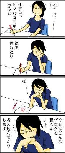 頭の中は自由奔放 2008年09月11日 22:16 私が仕事中、ぼんやりしてる時は、割ととんでもない事を考えてることが多いです。 今日のブログな何を描こうかなとか、こないだテレビで見た猫が可愛いかったなぁとか、もう仕事なんか辞めて本ばっかり読んで暮らしたいなぁとか、色々と妄想してます。 「日常」カテゴリの最新記事 < 前の記事次の記事 > コメント コメント一覧 (2) 1. ぺりこ 2008年09月12日 01:08 勝手ながら、いつも楽しくブログのほうを拝見させ...<br> 勝手ながら、いつも楽しくブログのほうを拝見させていただいておりますw 0 キヨ がしました 2. 清 2008年09月12日 23:48 ぺりこさん><br> ぺりこさん><br> コメントありがとうございます!<br> すごくうれしいです(*^_^*)<br> こんな所で良ければ、いつでも楽しんんでやってください!<br> 0 キヨ がしました コメントフォーム 名前 コメント 記事の評価 リセット リセット 顔 星 情報を記憶 コメントを投稿する