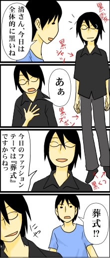 なんてったって喪服 2008年09月16日 23:04 もちろんジョークです。(笑) 暗い色の服を着ることが多い私ですが、この日は特に葬式みたいな恰好だったような気がする。 「コスメ・ファッション」カテゴリの最新記事 < 前の記事次の記事 > コメント コメントフォーム 名前 コメント 記事の評価 リセット リセット 顔 星 情報を記憶 コメントを投稿する