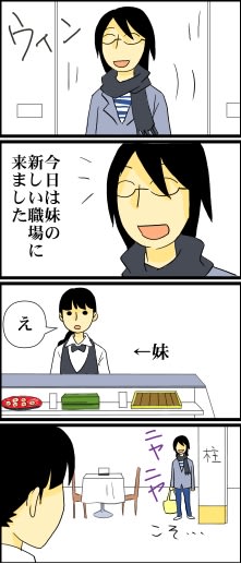 よくコソコソします 2008年10月28日 20:14 妹を見つけておどかしてやろうと思い、とりあえず柱の陰に隠れようとしたけど先に見つかっちゃって、恥ずかしくてとりあえずニヤニヤしてしまった姉。 「家族関連」カテゴリの最新記事 < 前の記事次の記事 > コメント コメント一覧 (2) 1. としあき 2008年10月30日 05:00 平気でいけるのが羨ましいです!<br> 平気でいけるのが羨ましいです!<br> 俺だったら恥ずかしくって・・・どうにもこうにも 0 キヨ がしました 2. 清 2008年10月30日 22:37 としあきさん><br> としあきさん><br> いや・・・、私も入るのに勇気を振り絞って行ったんですよー。(笑)<br> カサコソと入っていったので、不審者っぽかったと思います。<br> 0 キヨ がしました コメントフォーム 名前 コメント 記事の評価 リセット リセット 顔 星 情報を記憶 コメントを投稿する