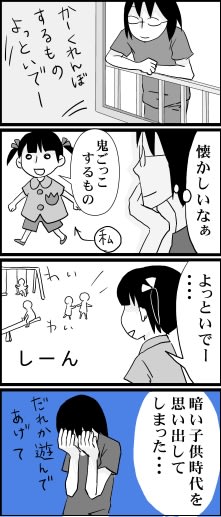 そして誰も来てくれない 2009年08月22日 21:57 昔から友達の少ない子供でした。 「昔のはなし」カテゴリの最新記事 < 前の記事次の記事 > コメント コメント一覧 (3) 1. あいこ 2009年08月23日 08:53 大丈夫ですよ!単純に気が合わなかっただけだと思...<br> 大丈夫ですよ!単純に気が合わなかっただけだと思います。<br> 私もそんな特別友達がいっぱいいるわけではないですし・・・。<br> 変な友達に引っかからなくてよかったじゃないですか!良い方向に考えよう[E:happy02] 0 キヨ がしました 2. にーな 2009年08月23日 12:02 うわぁー!<br> うわぁー!<br> 花いちもんめで最後に一人残ったときの寂しさを<br> 思い出してしまいました。<br> 子供の遊びって結構、傷つくものが多いんですよね。。。<br> 友達が少ないのは私も同じなんですが、<br> よく言えばかなり厳選されているはず^^<br> 0 キヨ がしました 3. 清 2009年08月23日 23:30 ★あいこさん★<br> ★あいこさん★<br> 私は昔っから人付き合いが苦手なんですよー。<br> まぁ、今はそんなに気にしてないですけどね。<br> 気の合う仲間が数人いれば、それで良いかな~って思います。<br> <br> <br> ★にーなさん★<br> 花いちもんめ!これまた懐かしい。<br> そしてこれも最後まで残るパターンが多かったです(笑)<br> あれは寂しいですねぇ[E:gawk]<br> クラスで、「じゃあ、仲の良い人でグループを作って下さい」っていうのも辛かったです。<br> 高確率で溢れちゃう子供でした。(笑) 0 キヨ がしました コメントフォーム 名前 コメント 記事の評価 リセット リセット 顔 星 情報を記憶 コメントを投稿する