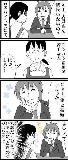 なにげない会話の中、恋愛話になった時に冗談まじりに「じゃあ、相手のいないもの同志、結婚しよっかー(笑)」だの「清さんと付き合ったら面白そう」言われると、思わずときめいてしまいます。