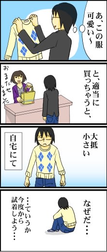そうそうそう、服やらブランドによって大きさ違いますよね~。<br>