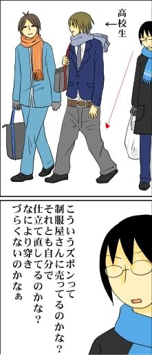 そんなわざわざ腰パン用ズボンが買えるほどの経済力は高校生にはありません(笑)<br>