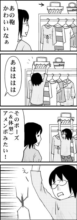 この手のネタは今までに何度か描いてるのですが、毎回違った生物に例えられるたびに、衝撃が走ってます(笑)