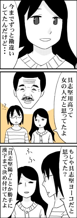 ヨーコさん 2011年02月11日 23:35 たしかに変わった名前だけどね。 最近、棒針で編み物を始めたとたん、ひどい肩こりになってしまいました。 いや・・・もう肩こりを通り越して、肩痛です。 どうすれは解消されるだろう・・・。市販されてるお灸とかやってみようかなぁ。 「家族関連」カテゴリの最新記事 < 前の記事次の記事 > コメント コメント一覧 (2) 1. なつこ 2011年02月13日 22:36 そういう世代なのですね・・・しみじみ。<br> そういう世代なのですね・・・しみじみ。<br> 私は「月極駐車場」をずーと「ゲッキョク」と云う駐車場管理会社だと思って、<br> 「この会社は、どこにでもあるなぁ。デカイ会社なんだろうなぁ」と思ってましたよ。19歳で免許をとるまで!┐(´~`;)┌ 0 キヨ がしました 2. 清 2011年02月15日 01:50 ★なつこさん★<br> ★なつこさん★<br> 月極は難しいです[E:sweat01]。なんで『極』なんですかね。<br> 私は月極さんって人物がいるのかと思ってました。<br> 0 キヨ がしました コメントフォーム 名前 コメント 記事の評価 リセット リセット 顔 星 情報を記憶 コメントを投稿する
