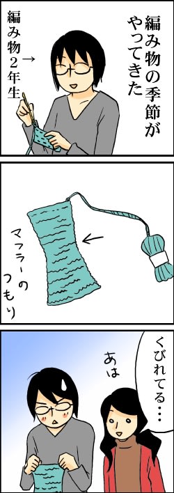 あみものの季節 2011年12月07日 23:21 このまま長く編んで、スヌードにしようか、マフラーにしちゃおうか考え中だったりします。 しかし、去年の方がうまく編めてた気がするのは気のせいかしら・・・・。 カテゴリなしの他の記事 < 前の記事次の記事 > コメント コメント一覧 (5) 1. kiriya kai 2011年12月08日 22:30 はじめまして!アルファポリスからきました!<br> はじめまして!アルファポリスからきました!<br> 自分もブログやってまして、今、エッセイブログ大賞に参加しています。よかったら投票してください。<br> 面白かったらで、かまいません。よかったらお願いします・・・!<br> http://ameblo.jp/crouwdo/<br> 「バーチャル漫才師クラウド」<br> 桐矢解より<br> 突然のお手紙、失礼いたしました・・・! 0 キヨ がしました 2. 敬 2011年12月11日 21:26 くびれを繰り返し編んでいけばそういうデザインの...<br> くびれを繰り返し編んでいけばそういうデザインのマフラーに見えるのでは(゜∇゜)<br> 0 キヨ がしました 3. 清 2011年12月13日 21:23 ★ kiriya kai さん★<br> ★ kiriya kai さん★<br> コメントありがとうございます~。早速、ブログを見学に行きますね~。<br> <br> ★敬さん★<br> 一瞬、それもいいかも!と思ったのですが、それはそれで難しいということが判明したので、悩み中です[E:think]<br> 全部ほどいて、一からやり直すか・・・。 0 キヨ がしました 4. マキ 2011年12月13日 23:10 本格的に苦手な棒針を練習中です。<br> 本格的に苦手な棒針を練習中です。<br> やっぱねぇ…かぎ針と棒針メリヤスでは生地の柔らかさが違うから…。<br> ニットワンピ作りたいな。<br> <br> <br> ところでおねえさま<br> 年賀状申し込みたいのですが<br> アウトルック入れてないのでメールフォームが開かず<br> infoseekの仕様変更時にアドレス帳移行し損ねたので<br> メールでの通信手段が…見当たらない、の、ですが…。<br> (最終手段はツイッターDM/笑) 0 キヨ がしました 5. 清 2011年12月14日 22:29 ★マキさん★<br> ★マキさん★<br> ニットワンピース作っちゃうんですか~。<br> いいなぁ。早くマフラー意外のものを編めるようになりたいなぁ(笑)<br> <br> 今、前回いただいた年賀状チェックしてみたら、マキさんの住所が分かりました~。<br> なので、メールなしで年賀状送りますね。<br> あ、住所は変わってないですよね? 0 キヨ がしました コメントフォーム 名前 コメント 記事の評価 リセット リセット 顔 星 情報を記憶 コメントを投稿する