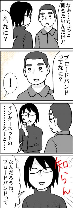 ブロードバンド 2012年02月04日 23:16 あらたまって「聞きたいことがある」って言うから、何かと思いました(笑) なんだろう・・・「ネット環境のこと」って言えばいいのかな・・・いや、ちょっと違うか? うまく答えられなくて、ごめんね カテゴリなしの他の記事 < 前の記事次の記事 > コメント コメント一覧 (2) 1. マキ 2012年02月05日 08:40 おおおお姉さーん!(笑)<br> おおおお姉さーん!(笑)<br> 大学時代に友人に聞かれた時の回答がこちら↓<br> 「ブロードが広いって意味でナローが狭いって意味ね。<br> ブロード/ナローバンドを道路、情報を車だと思ってごらん、<br> 片側4車線の道路のほうが1車線より一度にたくさん車が通れるでしょ」<br> 機械以外のものに例えたらなんとなく理解してもらえました…。 0 キヨ がしました 2. Unknown 2012年02月06日 20:24 ★マキさん★<br> ★マキさん★<br> ほほう・・・とりあえず、ブロードバンドの方はすごい!ってことかぁ。<br> そういう風に例えられると、確かに分かりやすい!<br> 0 キヨ がしました コメントフォーム 名前 コメント 記事の評価 リセット リセット 顔 星 情報を記憶 コメントを投稿する