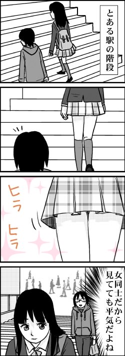 ちなみに、スカートを押さえて中を見せないようにしてる人がいると、余計に見たくなってしまいます。<br>