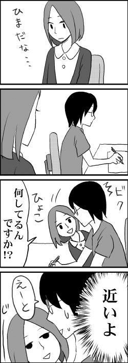 接近 2014年09月30日 21:07 この人にパーソナルスペースはないのかな? カテゴリなしの他の記事 < 前の記事次の記事 > コメント コメント一覧 (12) 1. 夢人 2014年10月01日 10:12 清さん フェイスブックは登録していますか<br> 清さん フェイスブックは登録していますか<br> 私は昨日登録しました<br> ツイッターはスマホを持っていないので使いにくいです 0 キヨ がしました 2. 清 2014年10月01日 23:27 ★夢人さん★<br> ★夢人さん★<br> 私もフェイスブックやってますよ~。<br> 写真を載せたりして、楽しんでます。<br> みんなの写真や文章を読むのも面白いですよね。<br> <br> ツイッターやフェイスブックは、パソコンの方が見やすいような気がします。 0 キヨ がしました 3. 真希 2014年10月02日 09:13 そりゃ~、ビックリしますよねぇ。いきなり顔を近...<br> そりゃ~、ビックリしますよねぇ。いきなり顔を近付けなくてもいいのに…。<br> 気持ちが悪くなかったのかな?[E:coldsweats02]<br> 夢人さんのコメントを読んでいて、気になっていました。<br> いつなのか忘れましたが、フェイスブックを登録していましたが、何となく…使いづらい<br> せいか辞めてしまったんで…。<br> 今のところ、再登録はまだ考えていませんね[E:think] 0 キヨ がしました 4. 清 2014年10月05日 16:47 ★真希さん★<br> ★真希さん★<br> そういう人なんだな~、と思うことにしました(笑)<br> 男性相手なら喜ばれそうな気もしますけどね。<br> 真希さんもフェイスブックしてたんですね。<br> いろんな人の日常が見れるので、楽しいです。 0 キヨ がしました 5. マキ 2014年10月05日 17:14 割と「そういう人」ですごめんなさい<br> 割と「そういう人」ですごめんなさい<br> (ただし懐いた人に限る) 0 キヨ がしました 6. 真希 2014年10月06日 09:43 そういう人なんだな~と思う事にすればいいからね(笑)<br> そういう人なんだな~と思う事にすればいいからね(笑)<br> 人によるかもしれないけど…。<br> そう、フェイスブックを登録していたんで使い慣れなかった<br> のもあったかもねぇ。。。 0 キヨ がしました 7. 清 2014年10月06日 18:36 ★マキさん★<br> ★マキさん★<br> マキさん、そういう人なんですね。<br> いや、仲良しの人にされるならいいんですけどね。<br> 出会って2~3日の人にやられると、困っちゃいます。<br> <br> <br> ★真紀さん★<br> 私は友達のフェイスブックを見るばっかりで、自分ではあまり書かないんですよね~。<br> なので、あまり使い方が分かってません(笑) 0 キヨ がしました 8. 真希 2014年10月07日 09:15 昨日、台風、豪雨が終わっていて、ホッとしていま...<br> 昨日、台風、豪雨が終わっていて、ホッとしています[E:happy01]<br> 強い風は吹いていて、次はいつ来るのか解らず、来て欲しくないくらい、嫌です…。<br> 殆ど友達のフェイスブックを見てばっかりなんですか?[E:happy02]<br> 自由だからいいよねぇ。<br> 0 キヨ がしました 9. 清 2014年10月07日 23:50 ★真希さん★<br> ★真希さん★<br> 台風は嫌ですね!<br> とくに風!傘をさしてても意味ないくらい濡れちゃうんですよね。<br> 会社に着いて、ズボンとか靴下が濡れてると憂鬱になっちゃいます。 0 キヨ がしました 10. 真希 2014年10月08日 16:47 でしょ?傘をさしてても意味ないくらい濡れちゃう...<br> でしょ?傘をさしてても意味ないくらい濡れちゃうって事。<br> せっかく過ぎ去っていても何日後、再び出て来る事があるので勘弁して欲しい[E:angry][E:impact]<br> 憂鬱なのは解るなぁ。 0 キヨ がしました 11. 清 2014年10月09日 22:36 ★真希さん★<br> ★真希さん★<br> そういえば、また台風が来てるみたいですよね!<br> またびしょ濡れになっちゃう。<br> 嫌過ぎます~[E:rain] 0 キヨ がしました 12. 真希 2014年10月12日 11:52 そう、今月で2回目の台風だそうで嫌です[E:angry]<br> そう、今月で2回目の台風だそうで嫌です[E:angry]<br> 大気不安定も…。 0 キヨ がしました コメントフォーム 名前 コメント 記事の評価 リセット リセット 顔 星 情報を記憶 コメントを投稿する