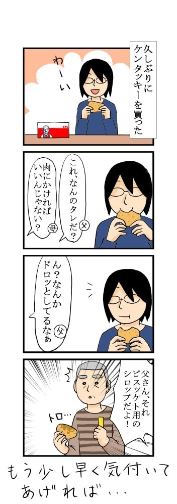 手遅れでした 2018年01月08日 18:04 「それ、甘いタレだよ」って教えたら 「そうか・・・じゃあ醤油かけるか」と、しょっぱさで甘さを調節してました。 「父」カテゴリの最新記事 < 前の記事次の記事 > コメント コメント一覧 (3) 1. 和田ヶゐ 2018年01月08日 22:01 むしろ<br> 醤油味のケンタが食いたくなりました(@_@) 0 キヨ がしました 2. はるあ 2018年01月08日 23:12 いいなー<br> ケンタが二店舗近所で潰れました<br> あとは遠くにしかないです<br> 食べたいな! 0 キヨ がしました 3. 清 2018年01月11日 20:35 Unknown<br> ★和田ヶゐさん★<br> 醤油味・・・美味しそうです~。<br> 食べたばかりだけど、また食べたくなっちゃいました。<br> <br> ★はるあさん★<br> 近所の二店舗がなくなっちゃうなんて、悲しいですね。<br> 無性に食べたくなった時、困っちゃいそう!<br> 0 キヨ がしました コメントフォーム 名前 コメント 記事の評価 リセット リセット 顔 星 情報を記憶 コメントを投稿する
