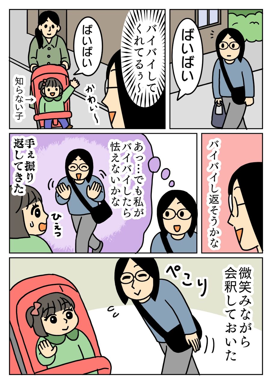 バイバイしてくれた女の子 2025年01月26日 20:00 見ず知らずの人間に手を振り返されて、トラウマになったらどうしよう・・・と不安になったので、会釈しておきました。 「日記・エッセイ・コラム」カテゴリの最新記事 < 前の記事次の記事 > コメント コメント一覧 (2) 1. BB 2025年01月27日 00:44 そのくらいの控えめ対応がベストかと思います。 たまに、後ろの別の人に手を振ってたりする事もありえますので、、、(悲しみ) 0 キヨ がしました 2. キヨ 2025年01月27日 16:57 >>1 別の人に手を振ってた時は気まず過ぎますね 気をつけます。 0 キヨ がしました コメントフォーム 名前 コメント 記事の評価 リセット リセット 顔 星 情報を記憶 コメントを投稿する