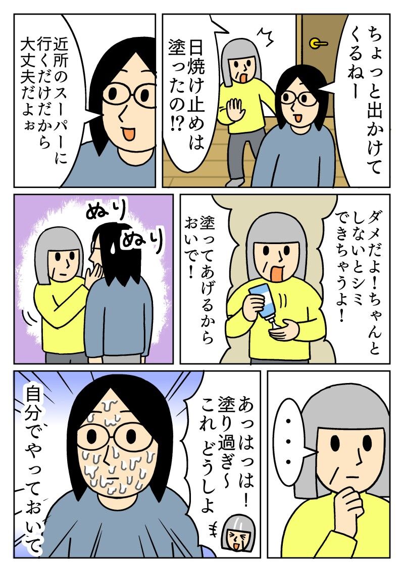 日焼け止めクリームを塗ってもらう 2025年04月13日 20:00 ベタベタになりましたが、自然乾燥させました。↓母の関連記事↓ 「美容」カテゴリの最新記事 < 前の記事次の記事 > コメント コメント一覧 (2) 1. BB 2025年04月14日 00:25 何て優しいお母さま! 娘の顔に自ら日焼け止めを塗ってあげるなんて。 ウチの娘だったら「何すんのよー、やめて〜」と言って逃げてしまうところですよ😆 0 キヨ がしました 2. キヨ 2025年04月14日 17:04 >>1 まさか塗ってくれるなんて思ってませんでした。 この日以降、母に塗ってもらうことはなくなりました。笑 0 キヨ がしました コメントフォーム 名前 コメント 記事の評価 リセット リセット 顔 星 情報を記憶 コメントを投稿する