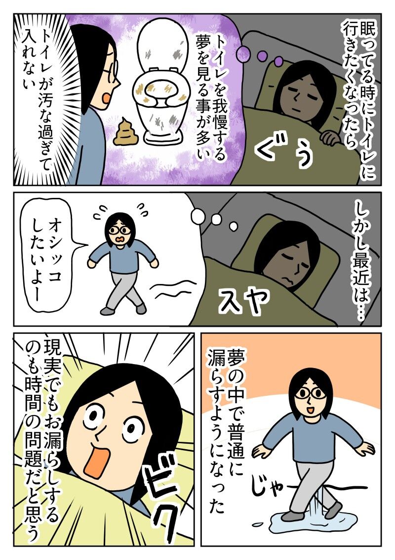 焦る夢 2025年10月22日 20:00 昔は夢の中では絶対オシッコしなかったのに、最近は漏らすようになりました。 「日記・エッセイ・コラム」カテゴリの最新記事 < 前の記事次の記事 > コメント コメント一覧 (6) 1. BB 2025年10月22日 20:08 吾輩は,恥ずかしながら、超頻尿でござる。 ゆえに,夜中多い時は3回トイレに行くでござる。 そんな時は決まってトイレの夢を見て目覚めるでござる。 夢の中のトイレは,ドアがなかったり、なぜか外から丸見えだったり、メチャメチャボロかったりして、使えないのでござる。 多分,切羽詰まっている心理のアラワレかと、、、 たまに、朝までぐっすり眠れると、すごく嬉しい朝を迎えるのでござる。 0 キヨ がしました 4. キヨ 2025年10月24日 15:22 >>1 私も夜間頻尿で、よく夜中にトイレ行きます。 夢の中のトイレって使えないのばっかりですよね。 丸見えだったりボロボロだったり、BBさんの夢の中のトイレと同じ状態です。笑 最近は、そんなメチャクチャなトイレで普通にオシッコしちゃってます。 0 キヨ がしました 2. みん 2025年10月23日 10:11 睡眠不足が数日続き、ようやく久しぶりの眠りにフラフラとついた夜、夢を見て、夢の中でトイレで小を済ませる情景を見た瞬間、股間が生暖かくなり…。 いい大人なのにやっちまいました。 どうやらストレスや疲労などで自律神経がやられると脳のストッパーが鈍り、漏らしたりしやすいらしい。 お疲れの際はお気をつけて…💦 0 キヨ がしました 5. キヨ 2025年10月24日 15:24 >>2 わ~~! お漏らししちゃったんですね! お漏らしと自律神経って関係してるんですね。 私も近いうちに同じ事になりそうな気がします。 0 キヨ がしました 3. Yuki 2025年10月24日 14:39 私もトイレに入ろうとする夢をよく見ます。 よくあるのがトイレが和式だったり汚かったり。 漏らした夢は…、今のところ1度もありません。 0 キヨ がしました 6. キヨ 2025年10月24日 15:32 >>3 私も汚い和式のトイレの夢、よく見ます。笑 最近はそんな汚いトイレでオシッコしちゃう夢を見ます。 いつか現実で漏らすんじゃないかと、ヒヤヒヤしてます。 0 キヨ がしました コメントフォーム 名前 コメント 記事の評価 リセット リセット 顔 星 情報を記憶 コメントを投稿する