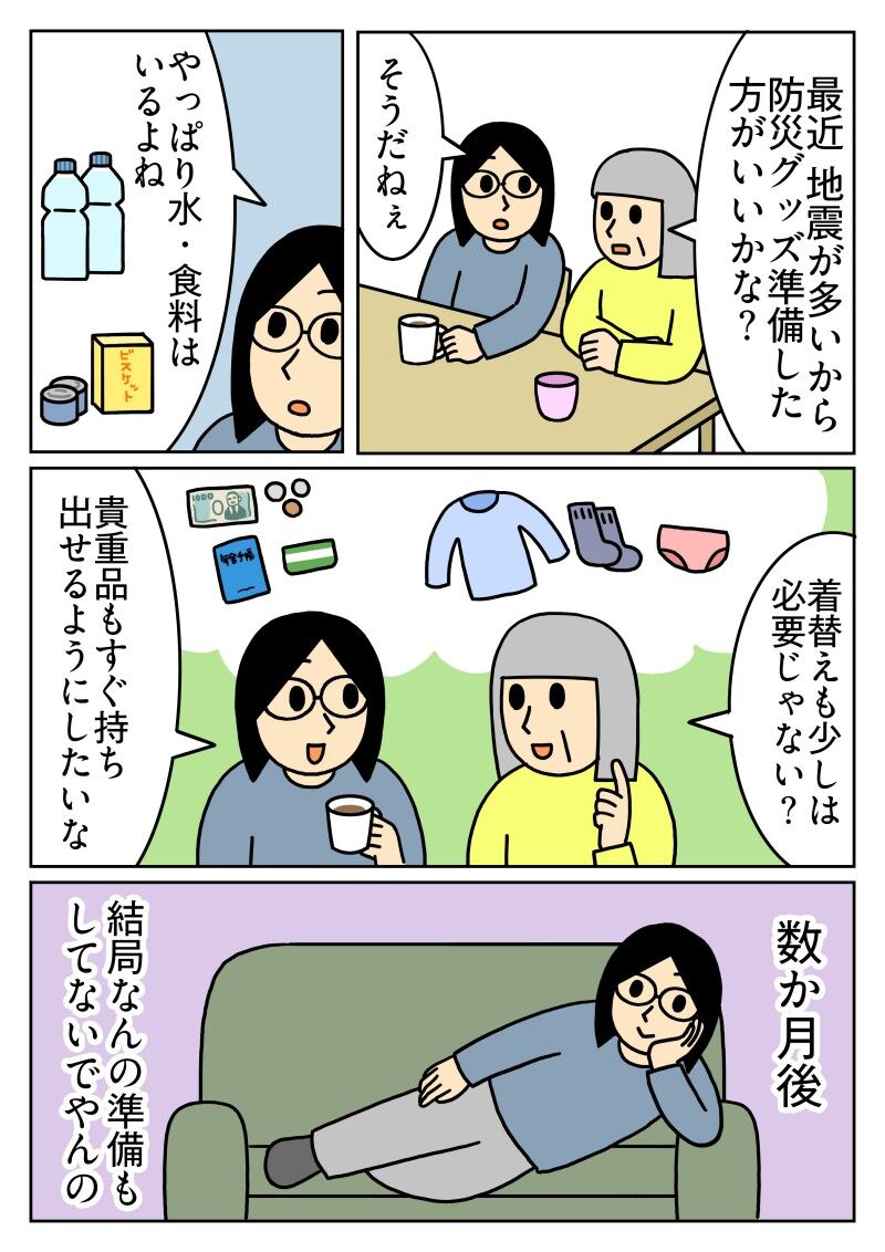 防災グッズを作りたいけど 2025年12月16日 19:00 定期的に防災グッズを準備しようと思い立つのですが、結局何も準備しないで時間だけが経っています。Xでも呟いてますフォローしていただけると嬉しいです↓こちらから色々見れます↓ 「母」カテゴリの最新記事 < 前の記事次の記事 > コメント コメント一覧 (9) 1. BB 2025年12月17日 15:51 私もです。 玄関収納に,避難袋リュック2個ありますが、中身点検してないから、今の所ゴッツ 不安です。 や、、、やらねば、、、 多分,非常食,期限切れだな、、、 0 キヨ がしました 2. キヨ 2025年12月17日 17:06 >>1 避難袋を準備してるのは凄いです! 機嫌切れも心配ですよね。 そういう管理も大変そうなんですよね~ 0 キヨ がしました 3. まめぞう 2025年12月17日 18:07 私もですよ。北海道大停電の時にひどい目にあったのに、なにもしてません。 しかも、この間の地震の時爆睡して全然気が付きませんでした。朝にニュースで地元が震度3で驚愕しました。ダメな人間自分・・・。 0 キヨ がしました 5. キヨ 2025年12月18日 16:56 >>3 あのブラックアウトは辛かったですよね! うちはマンションなのですが、停電になると水も止まる仕組みなので大変でした。 でも未だに準備してないという・・・。汗 0 キヨ がしました 6. キヨ 2025年12月18日 16:56 >>3 あのブラックアウトは辛かったですよね! うちはマンションなのですが、停電になると水も止まる仕組みなので大変でした。 でも未だに準備してないという・・・。汗 0 キヨ がしました 4. Yuki 2025年12月18日 15:12 うちの場合、2リットルのお水を1箱買いました。そういえば買ったきり、賞味期限をちゃんとみていません。何年も持つとは思いますが、切れていたりして。 0 キヨ がしました 7. キヨ 2025年12月18日 17:02 >>4 一箱あれば安心ですね! やっぱり管理するのが地味に大変ですよね。 賞味期限が近くなったら買い直したり・・・。 0 キヨ がしました 8. 食いしんボーイ 2025年12月21日 09:30 私が実践中なのは、楽天やAmazonで 「痩せる黒烏龍茶」等の箱買いです。 外出不要&続けたら、気持ち痩せるので。笑 0 キヨ がしました 9. キヨ 2025年12月21日 16:54 >>8 なるほど。 痩せる事ができたら一石二鳥ですね! 0 キヨ がしました コメントフォーム 名前 コメント 記事の評価 リセット リセット 顔 星 情報を記憶 コメントを投稿する