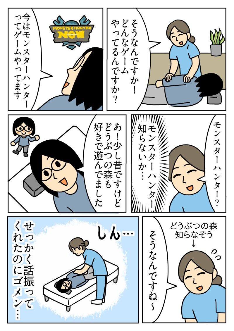 あ、でも、少し前、リハビリ行ってた時は、たまたま担当してくれた方が話の合う人で、時間が足りないほどでした。